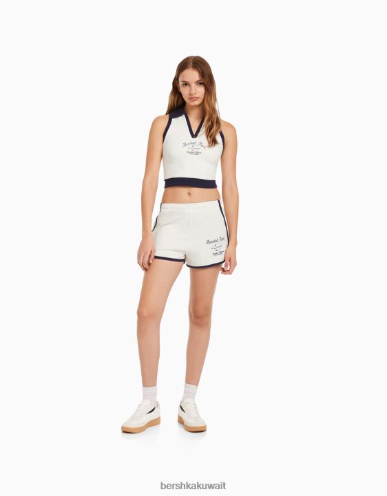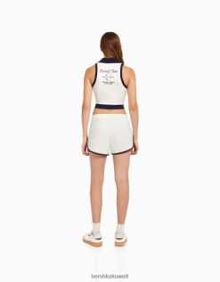Bershka نحيف طقم من سويت شيرت وشورت بطبعة بلا أكمام كريم 804X2053 ملابس