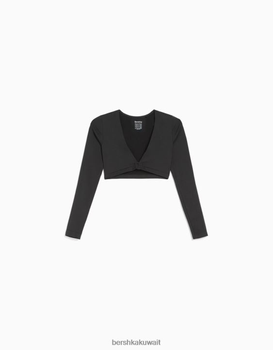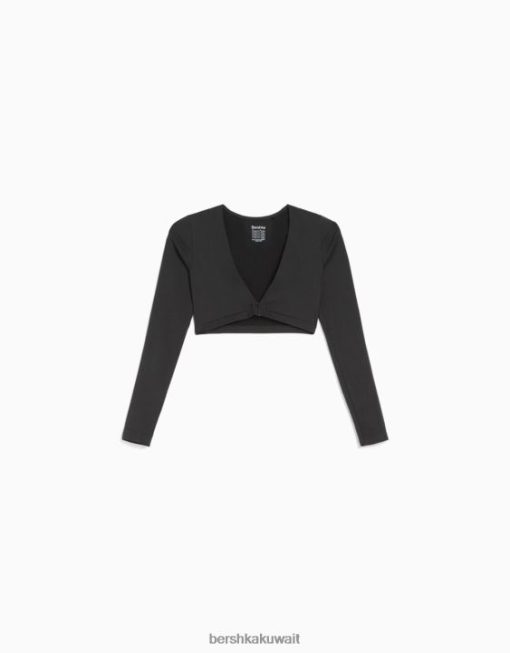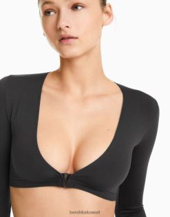Bershka نحيف طويلة الأكمام الخامس الرقبة اقتصاص تي شيرت سلس الرمادي الداكن 804X372 ملابس