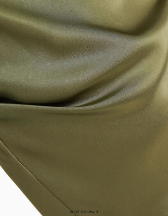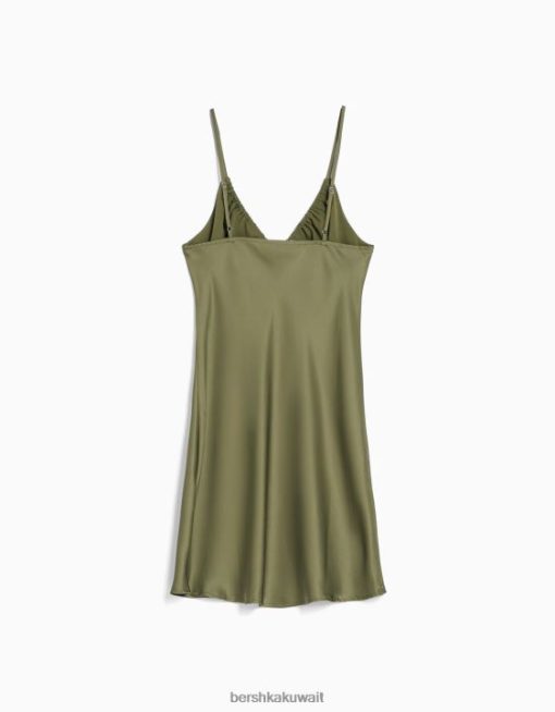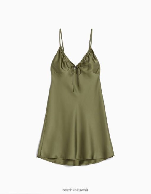 Bershka نحيف فستان ساتان ضيق من الساتان مع تجمع الكاكي 804X70 ملابس