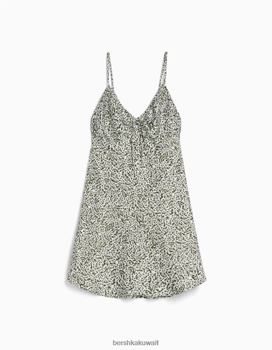 Bershka نحيف فستان ساتان ضيق من الساتان مع تجمع متعدد الألوان 804X4113 ملابس