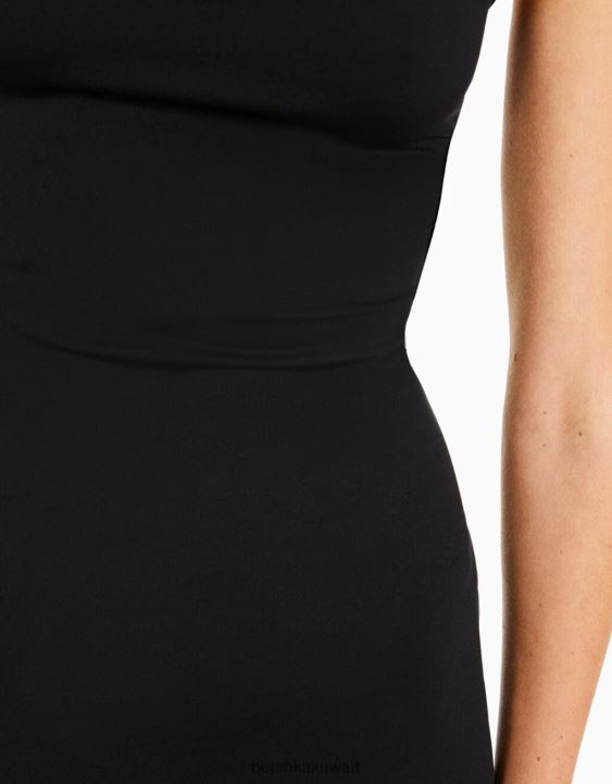 Bershka نحيف فستان طويل ضيق أسود 804X22 ملابس