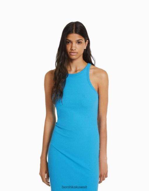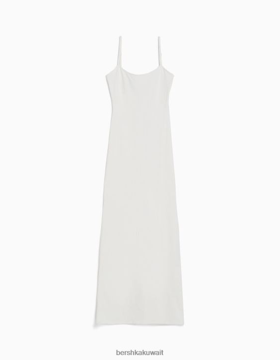 Bershka نحيف فستان طويل ضيق كريم 804X20 ملابس