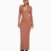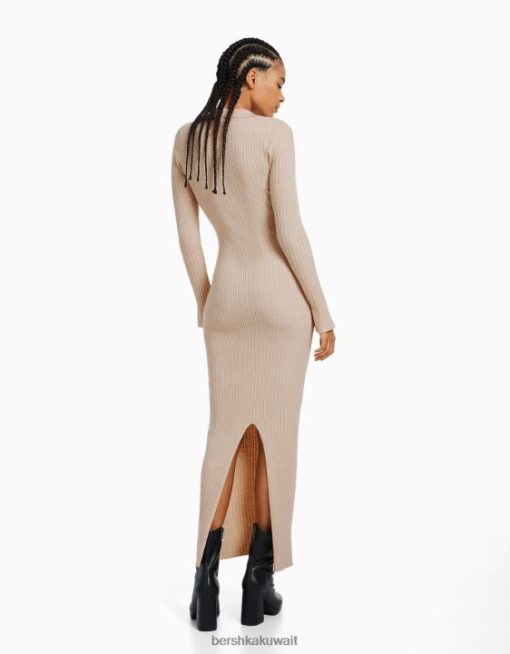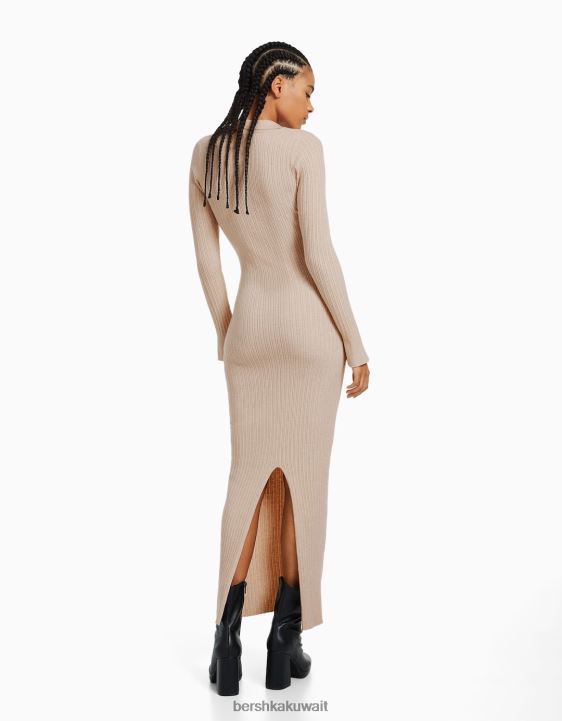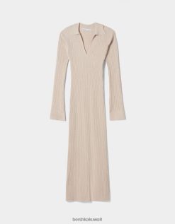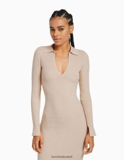 Bershka نحيف فستان طويل منسوج بياقة بولو رمل 804X253 ملابس