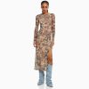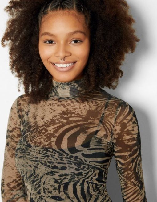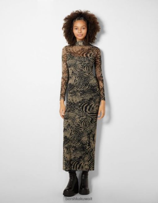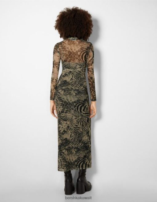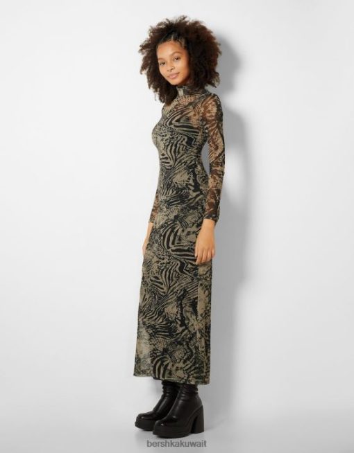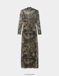 Bershka نحيف فستان طويل من التول بأكمام طويلة وطبعة البنفسجي 804X247 ملابس