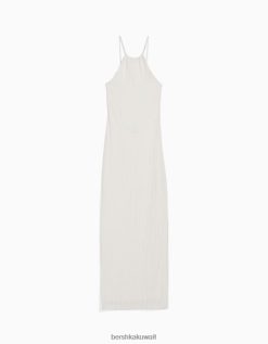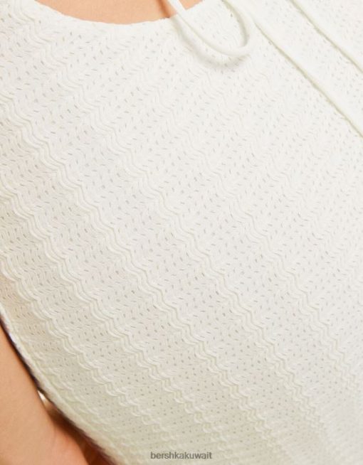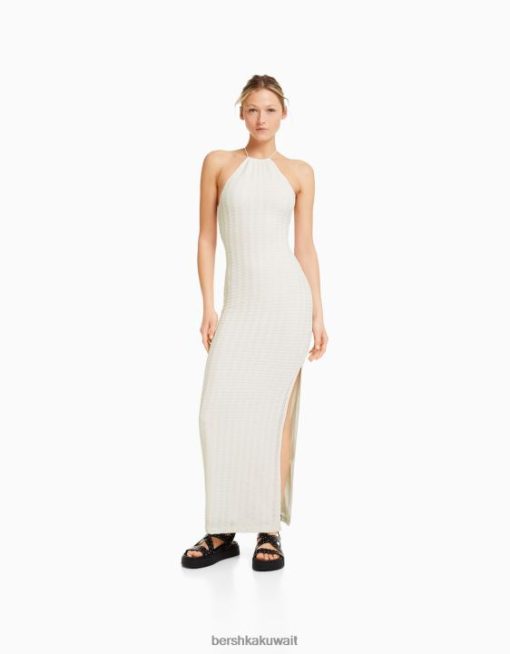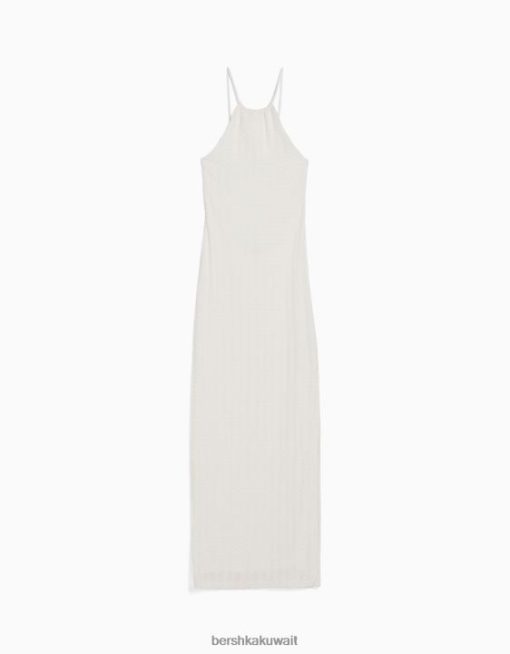 Bershka نحيف فستان طويل من الكروشيه أبيض 804X127 ملابس