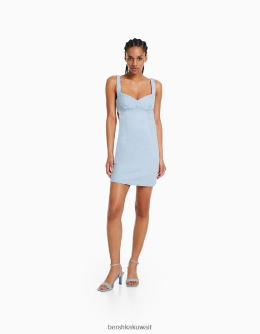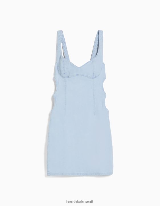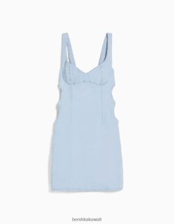 Bershka نحيف فستان قصير بأربطة مع تفاصيل من حجر الراين والفتحة أزرق فاتح 804X41 ملابس