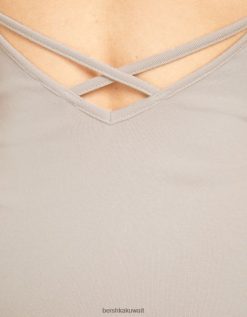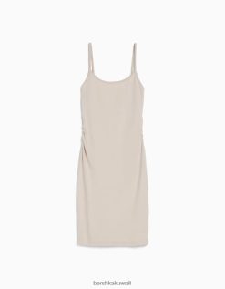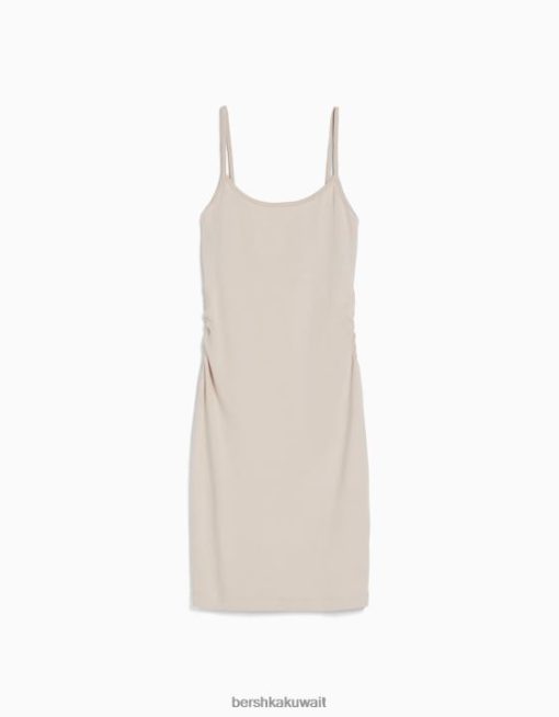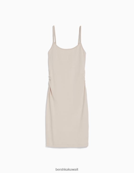 Bershka نحيف فستان قصير بأربطة مع جانب متجمع رمل 804X4073 ملابس