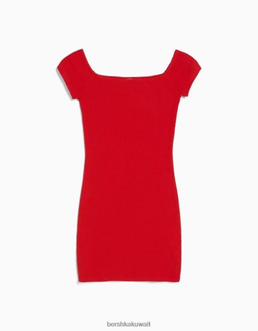 Bershka نحيف فستان قصير بأكمام قصيرة مكشوف الكتفين أحمر 804X207 ملابس