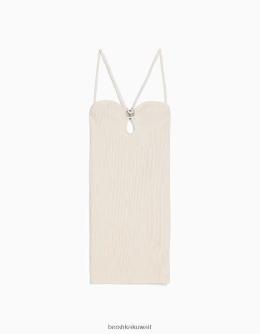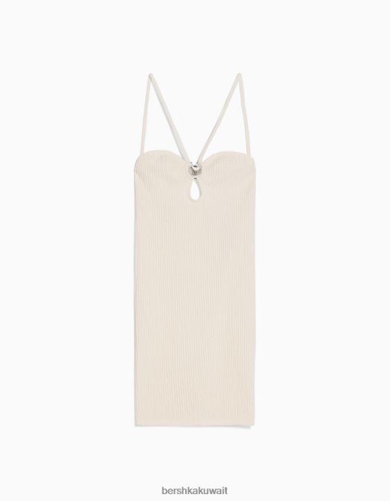 Bershka نحيف فستان قصير بدون خياطة مع تفاصيل أبيض 804X17 ملابس
