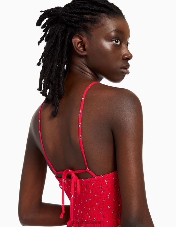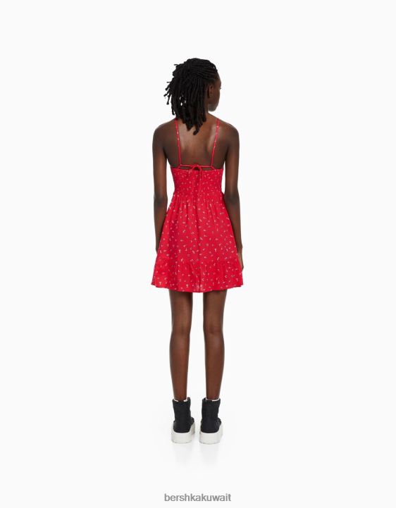 Bershka نحيف فستان قصير بطبعة رسن أحمر 804X271 ملابس