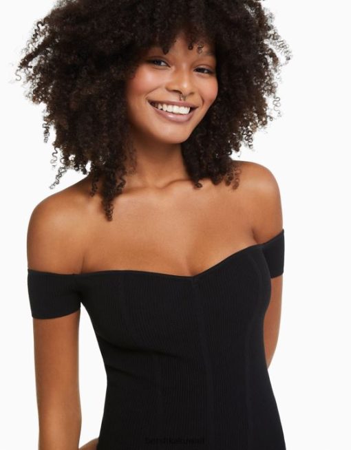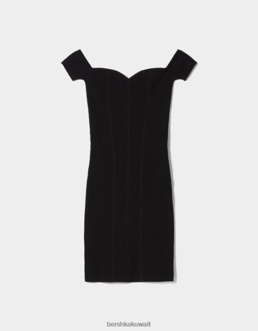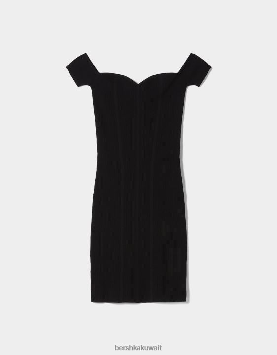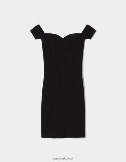 Bershka نحيف فستان قصير بفتحة رقبة مشد أسود 804X208 ملابس