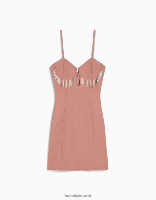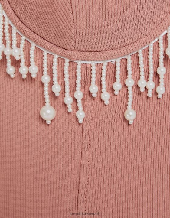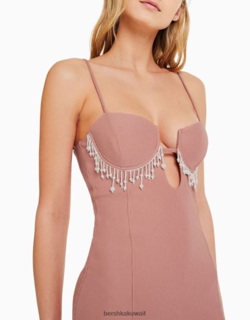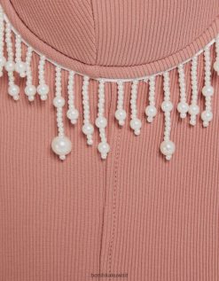 Bershka نحيف فستان قصير ضيق مع تفاصيل لؤلؤ صناعي لون القرنفل 804X222 ملابس