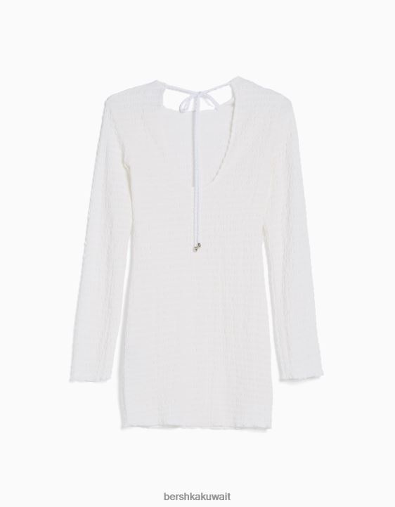 Bershka نحيف فستان قصير كم طويل بفتحة من الخلف و فيونكة كريم 804X4105 ملابس