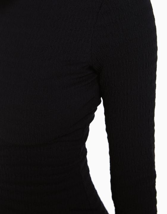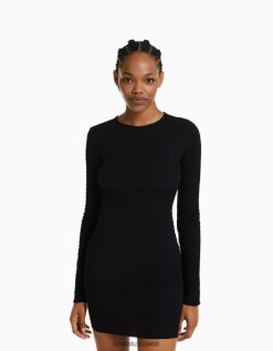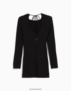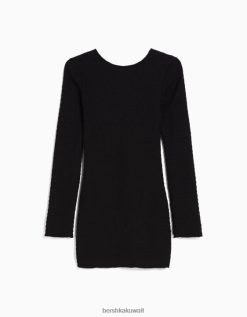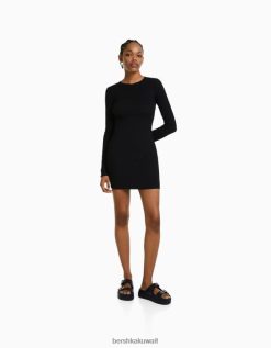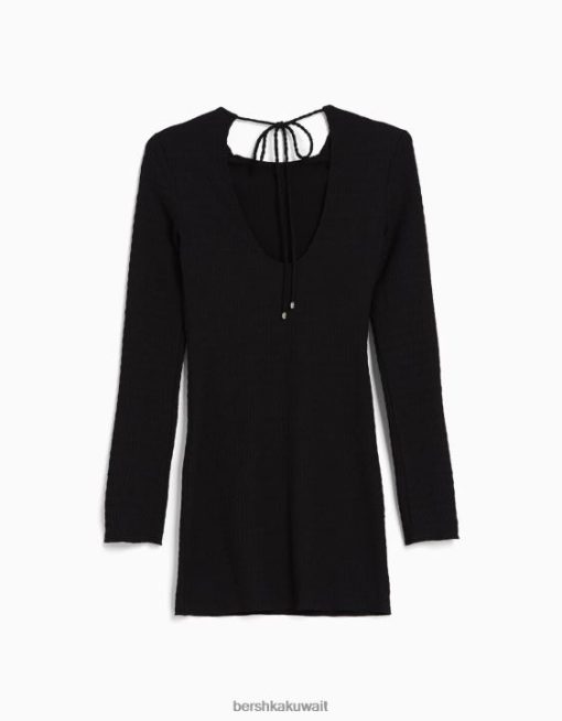 Bershka نحيف فستان قصير كم طويل بفتحة من الخلف و فيونكة أسود 804X230 ملابس