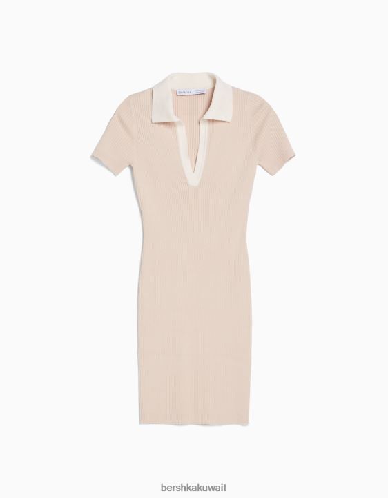 Bershka نحيف فستان قصير كم قصير بياقة بولو رمل 804X267 ملابس