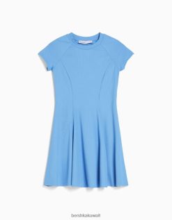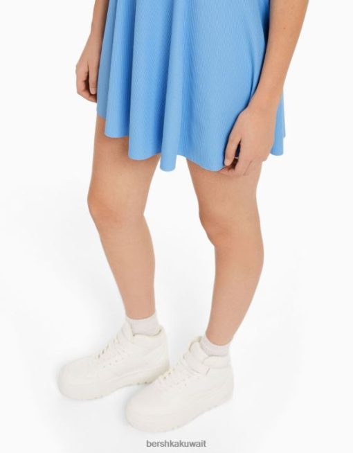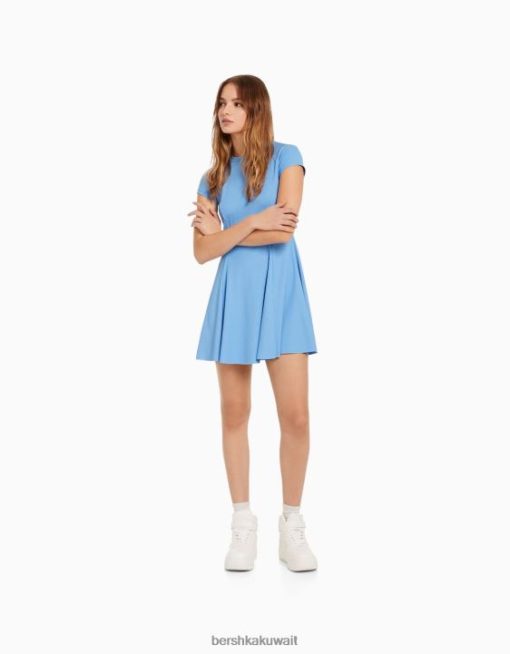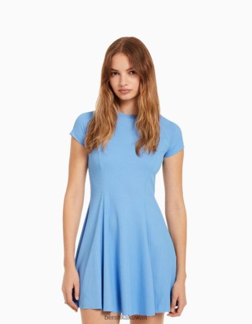 Bershka نحيف فستان قصير كم قصير متزلج أزرق 804X4107 ملابس