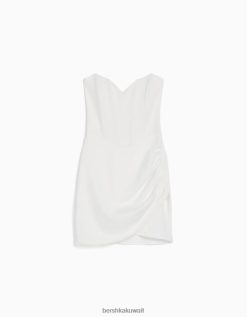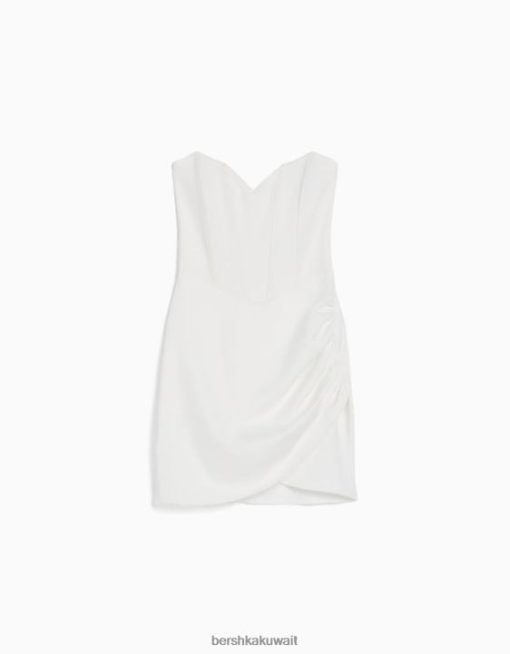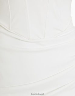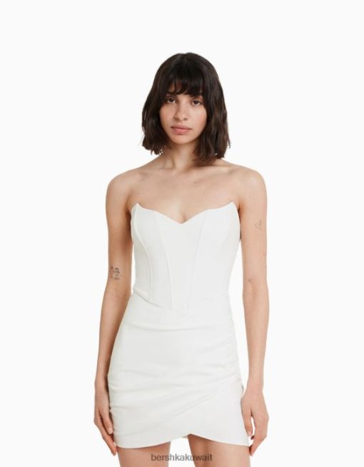 Bershka نحيف فستان قصير مشد بحاشية متقاطعة أبيض 804X126 ملابس