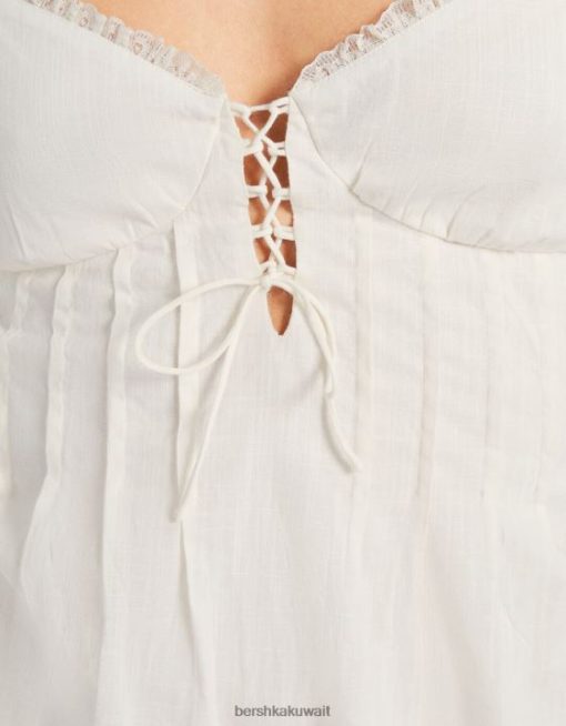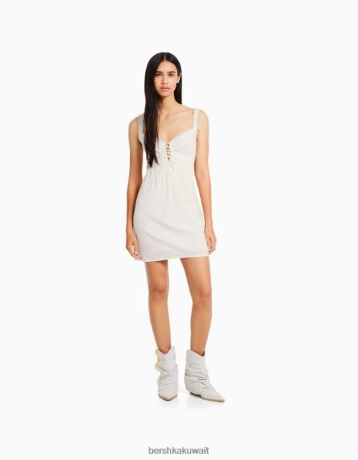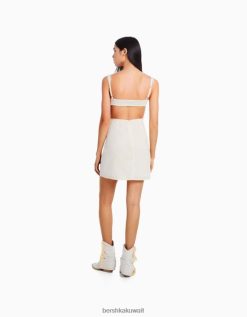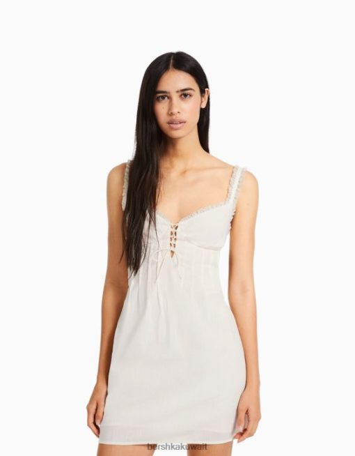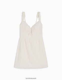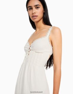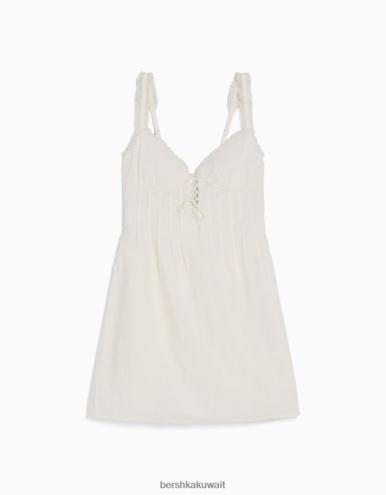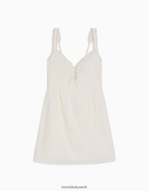 Bershka نحيف فستان قصير مشد ريفي مع تفاصيل ربطة عنق اللون البيج 804X178 ملابس