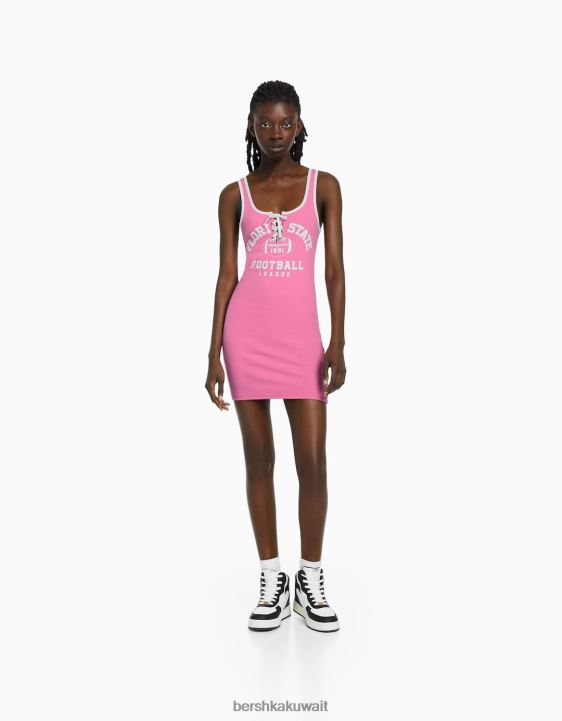 Bershka نحيف فستان قصير مضلع مطبوع لون القرنفل 804X276 ملابس