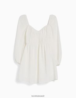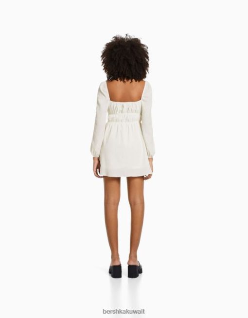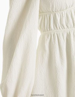 Bershka نحيف فستان قصير منسوج بأكمام طويلة كريم 804X224 ملابس