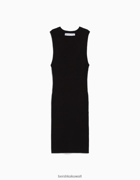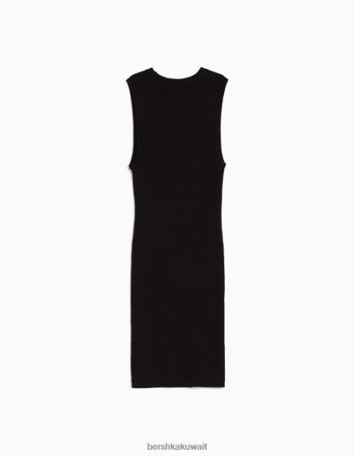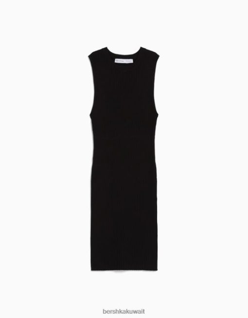 Bershka نحيف فستان قصير منسوج مضلع أسود 804X4097 ملابس