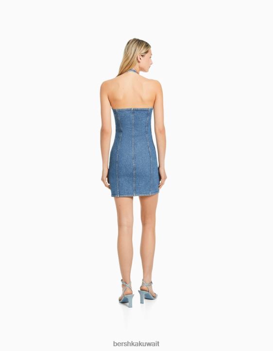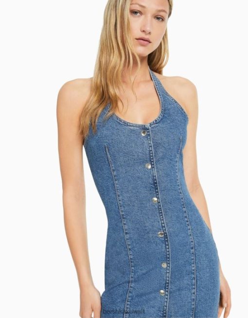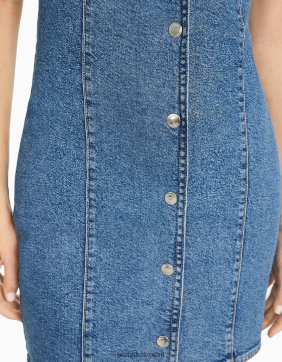 Bershka نحيف فستان قصير من الدنيم بأزرار أزرق فاتح 804X1948 ملابس
