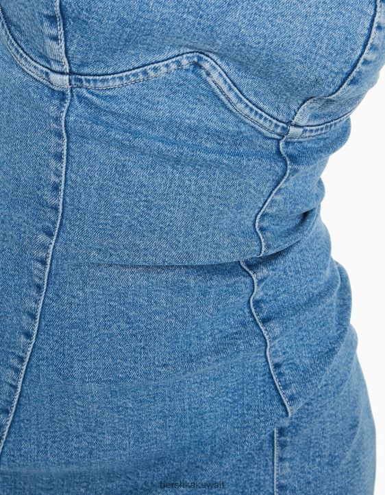 Bershka نحيف فستان قصير من الدنيم مكشوف الأكتاف أزرق فاتح 804X83 ملابس