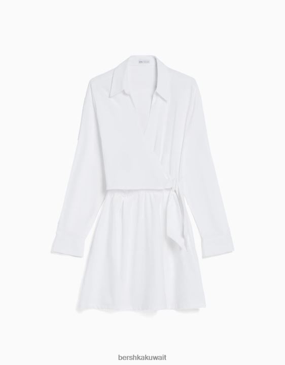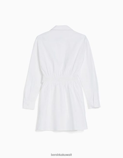 Bershka نحيف فستان قميص قصير الأكمام مع تفاصيل كروس أبيض 804X4108 ملابس