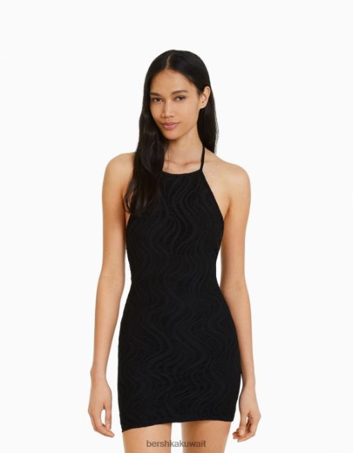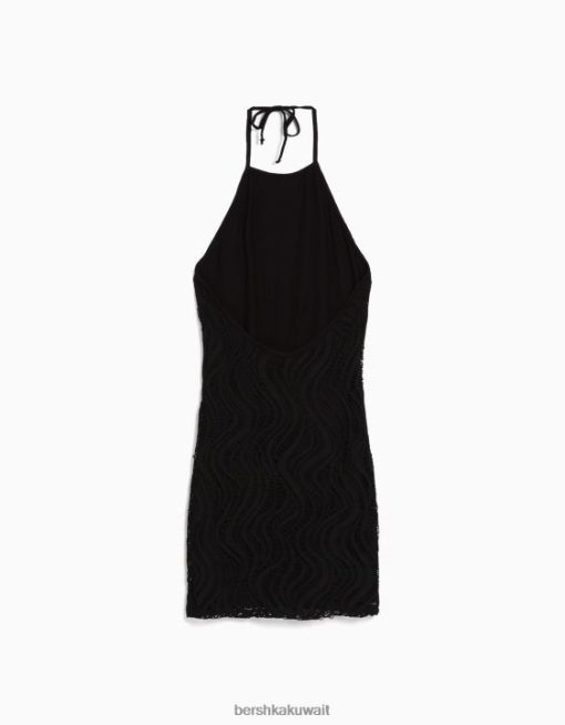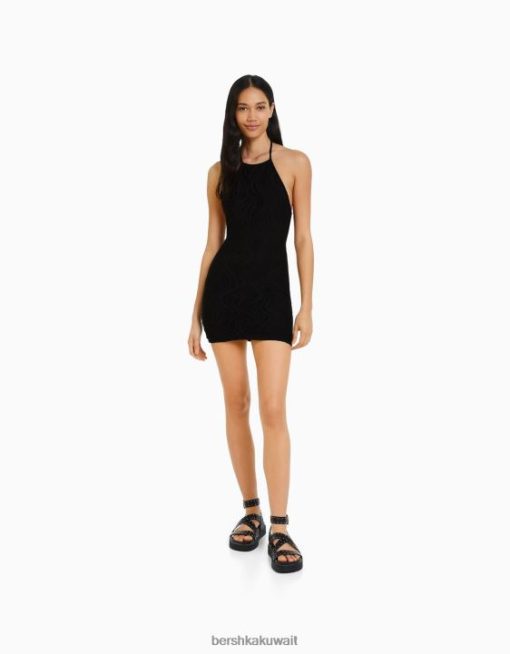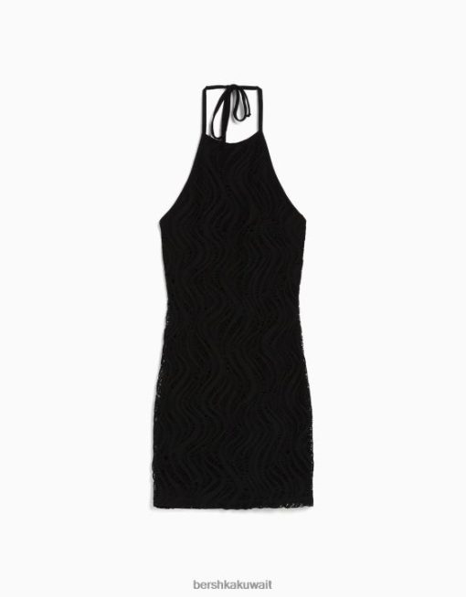 Bershka نحيف فستان كروشيه قصير برقبة رسن أسود 804X201 ملابس