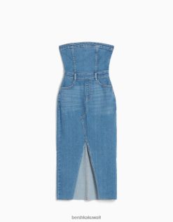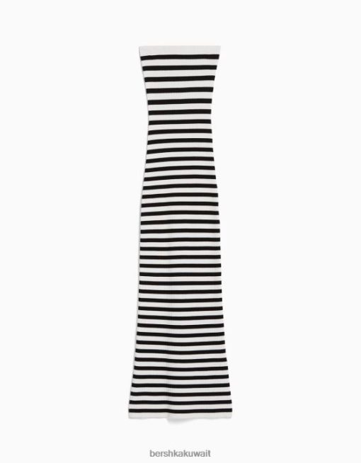 Bershka نحيف فستان مخطط باندو ميدي أبيض 804X43 ملابس