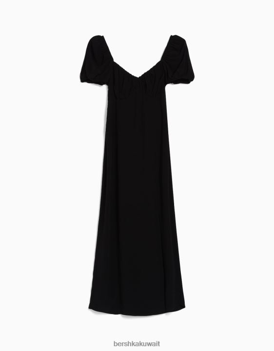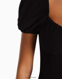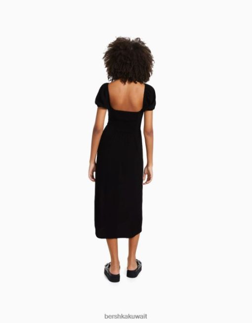 Bershka نحيف فستان ميدي بأكمام قصيرة أسود 804X217 ملابس