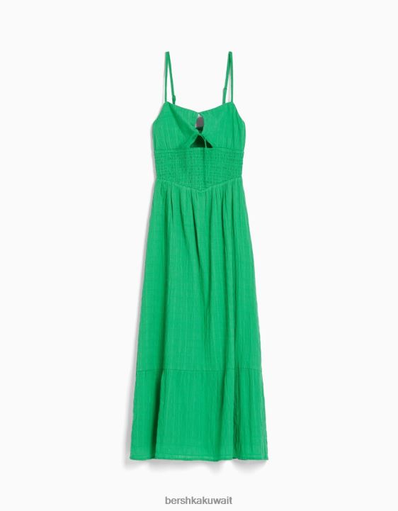 Bershka نحيف فستان ميدي بحمالات وكشكش أخضر 804X64 ملابس