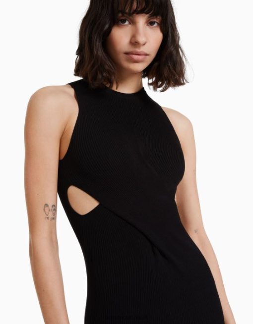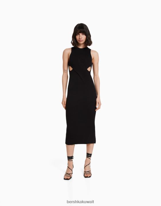 Bershka نحيف فستان ميدي بدون أكمام أسود 804X130 ملابس