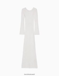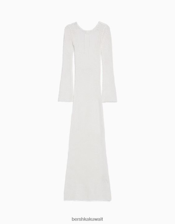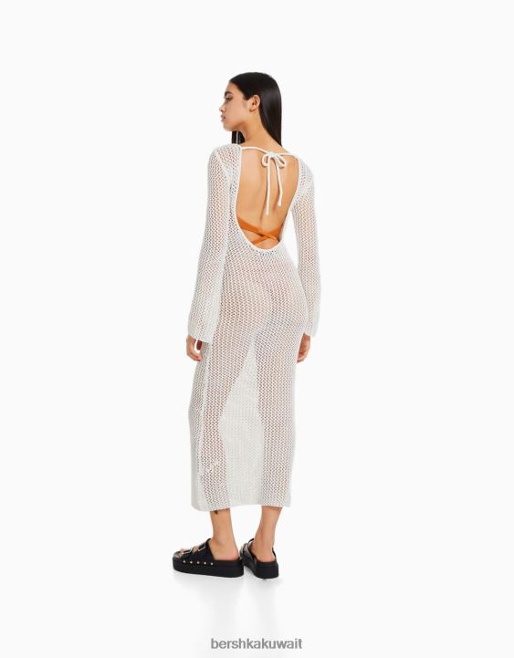 Bershka نحيف فستان ميدي شبكي بأكمام طويلة مع ظهر مفتوح كريم 804X998 ملابس