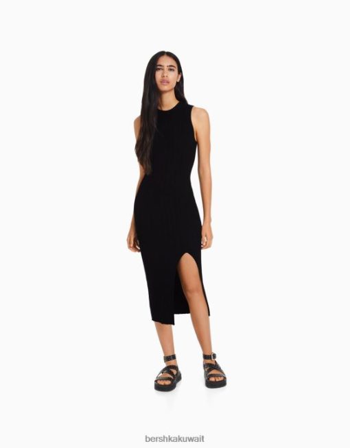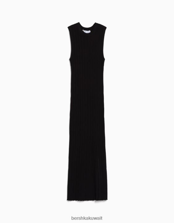 Bershka نحيف فستان ميدي محبوك بلا أكمام أسود 804X974 ملابس