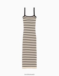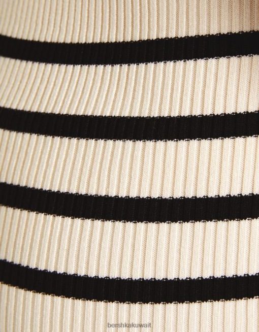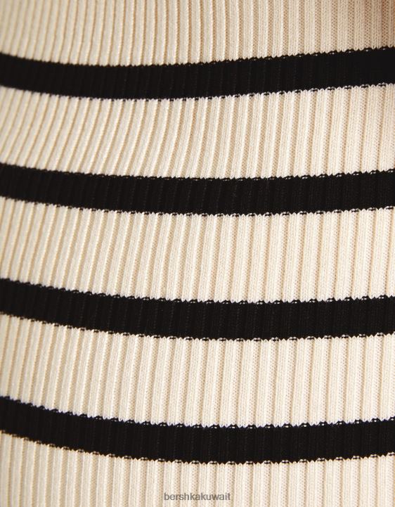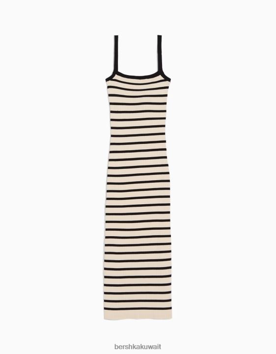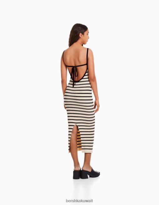 Bershka نحيف فستان ميدي مخطط مع احزمة أسود 804X212 ملابس