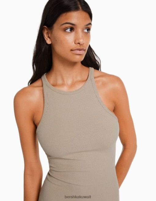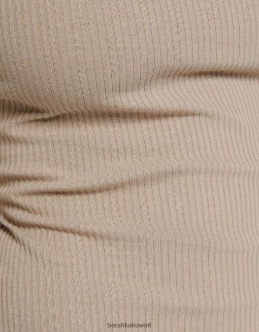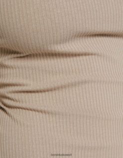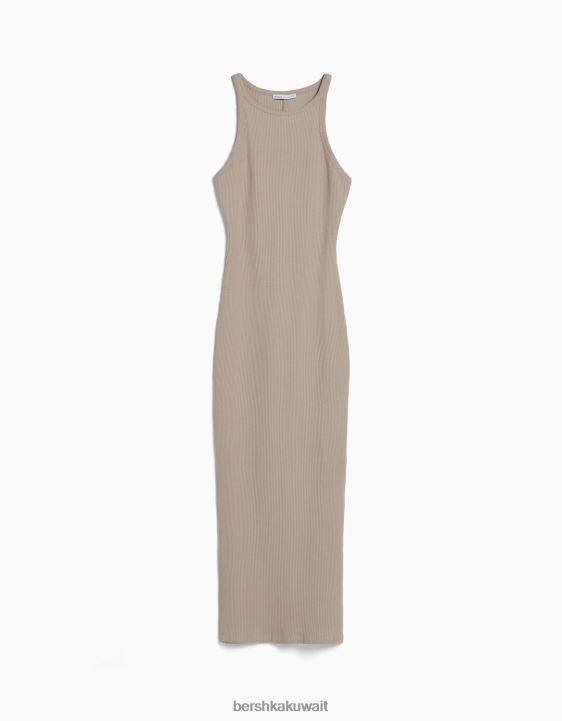 Bershka نحيف فستان ميدي مضلع بلا أكمام رمل 804X4 ملابس