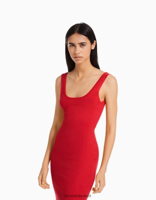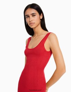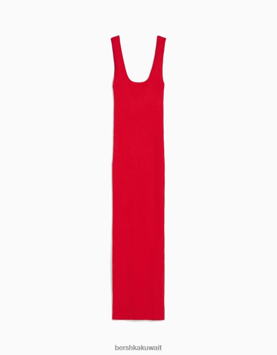 Bershka نحيف فستان ميدي مضلع مضلع أحمر 804X103 ملابس