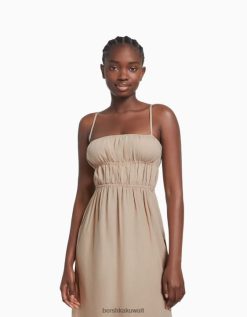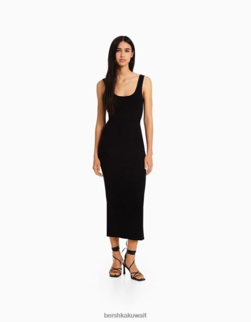 Bershka نحيف فستان ميدي مضلع مضلع أسود 804X102 ملابس