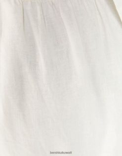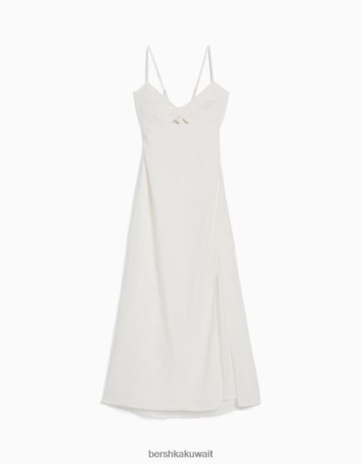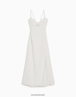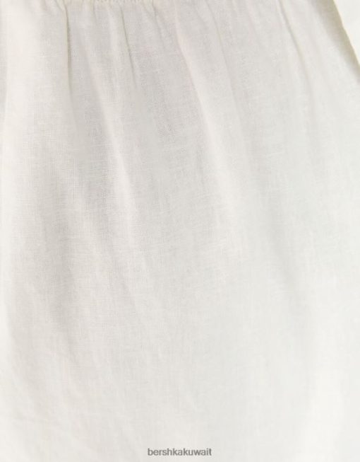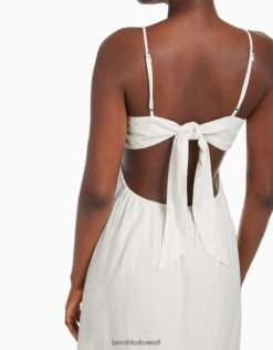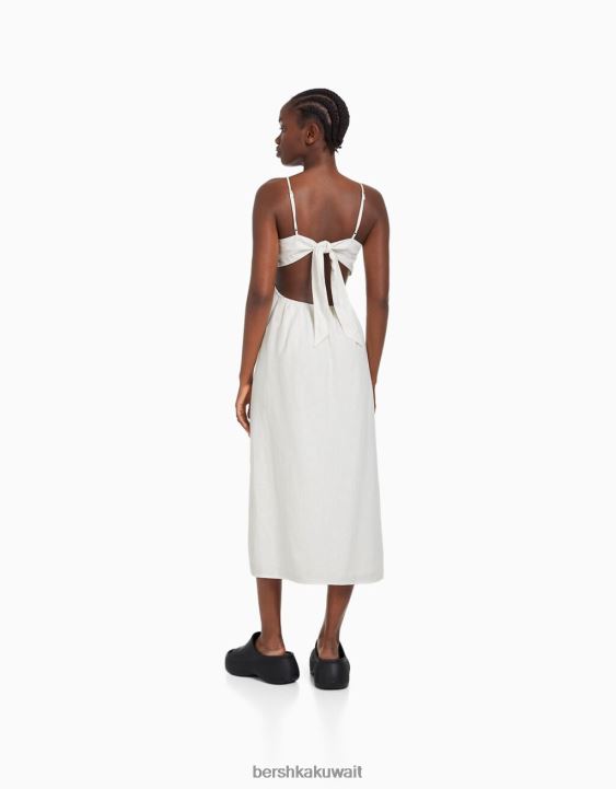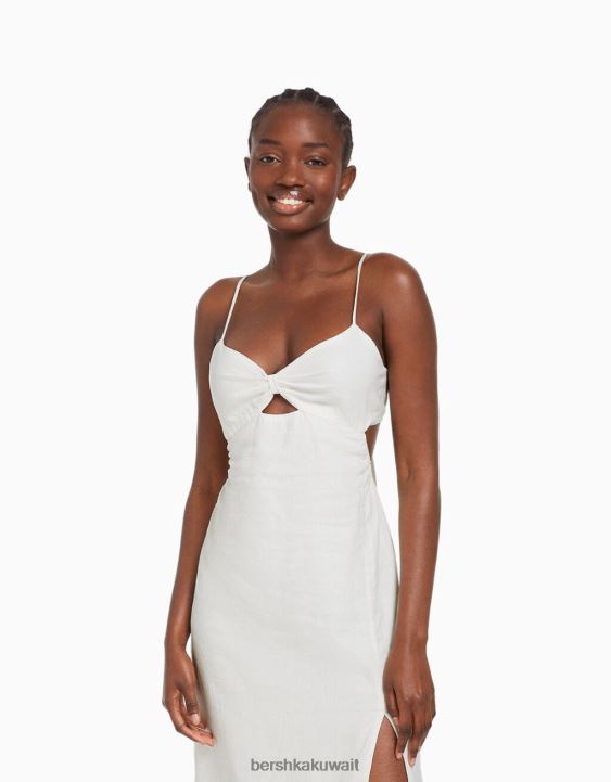 Bershka نحيف فستان ميدي من مزيج الكتان مع أحزمة أبيض 804X76 ملابس