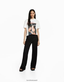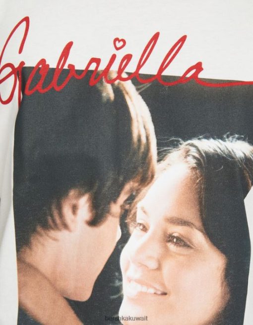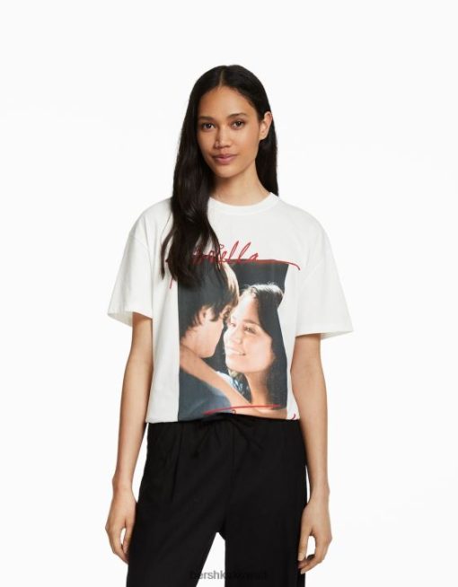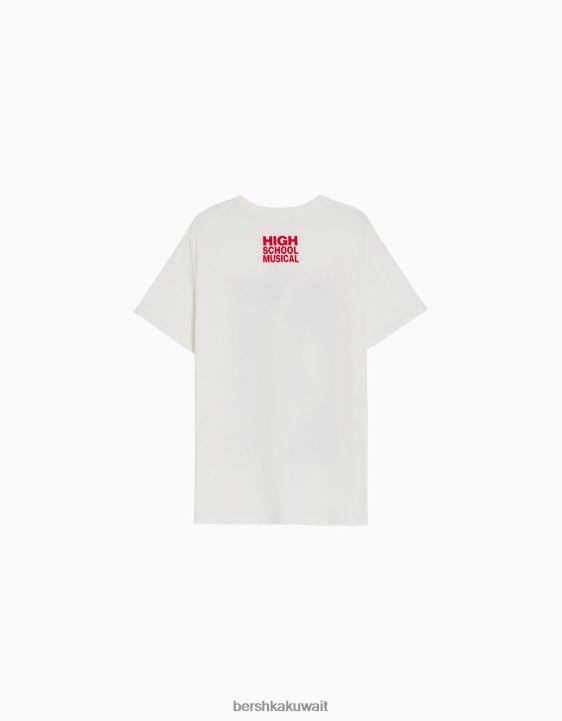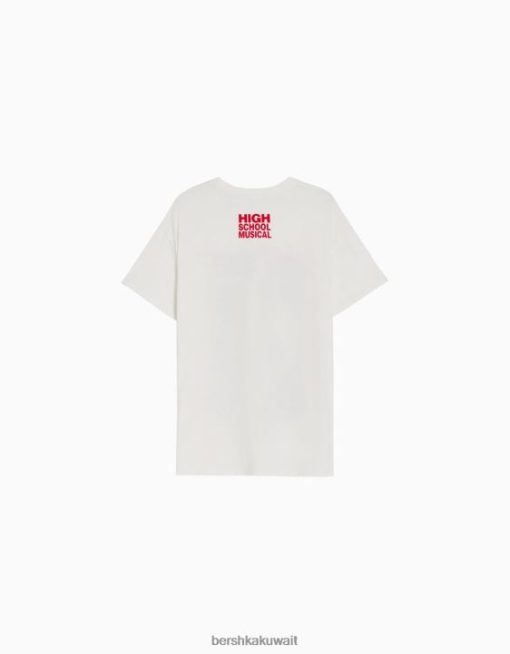 Bershka نحيف قصيرة الأكمام المدرسة الثانوية الموسيقية طباعة تي شيرت أبيض 804X485 ملابس