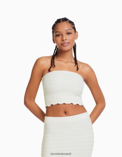 Bershka نحيف قمة باندو منسوجة بسكويت الوفل أبيض 804X859 ملابس