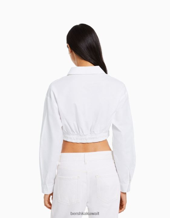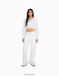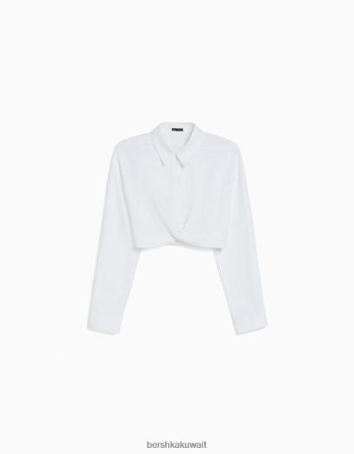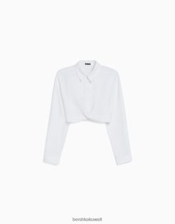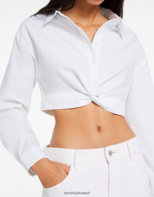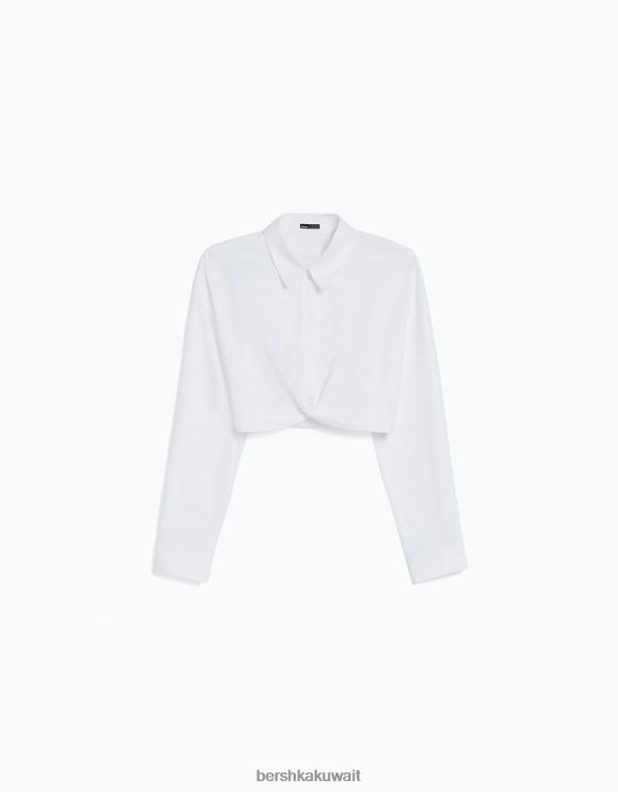 Bershka نحيف قميص بأكمام طويلة مع تفاصيل متقاطعة من الأمام أبيض 804X920 ملابس