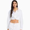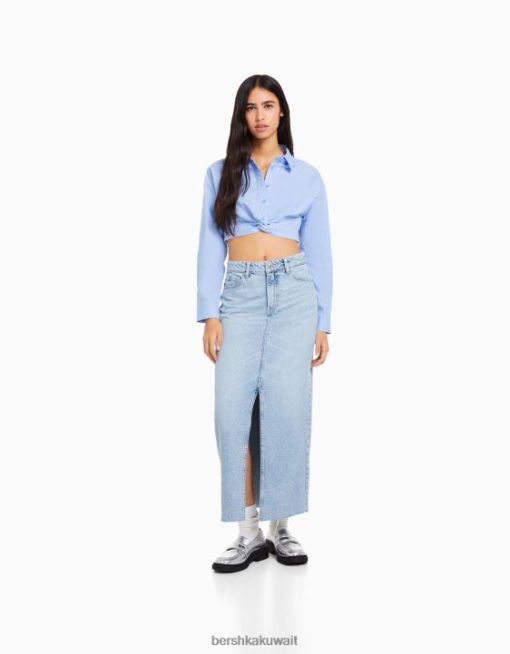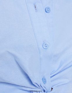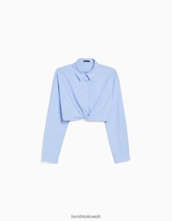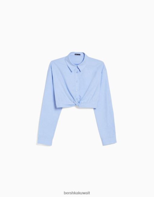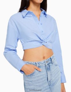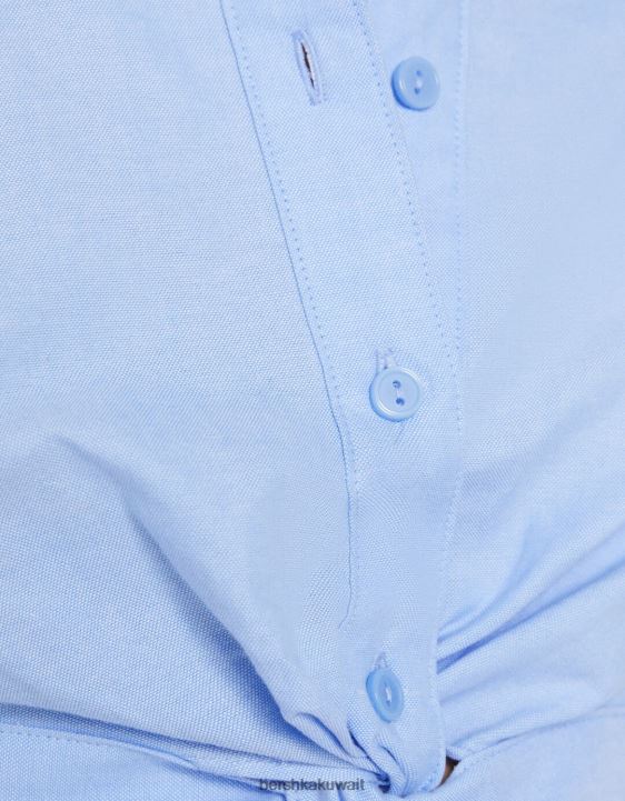 Bershka نحيف قميص بأكمام طويلة مع تفاصيل متقاطعة من الأمام أزرق فاتح 804X921 ملابس