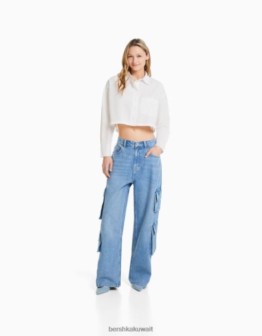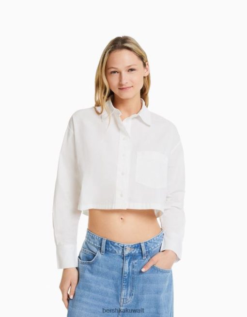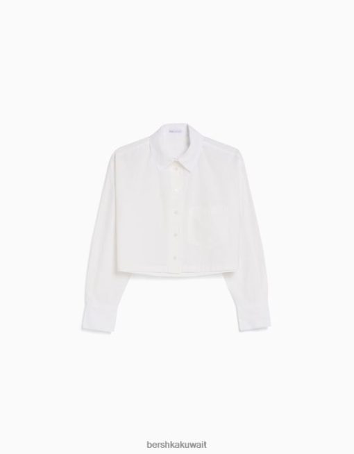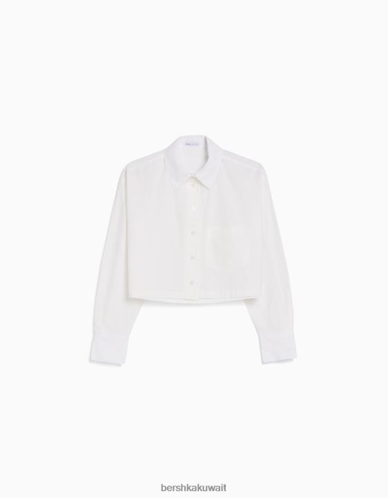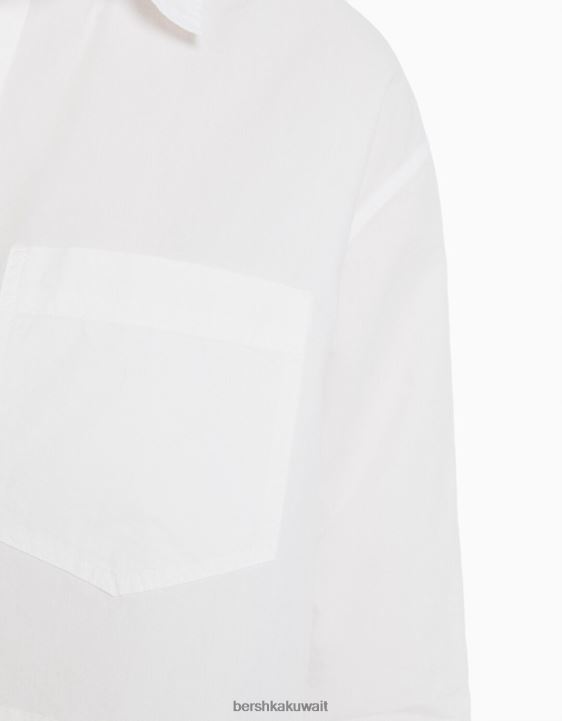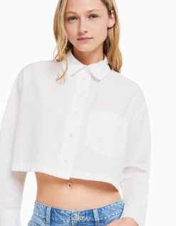 Bershka نحيف قميص بوبلين قصير الأكمام أبيض 804X933 ملابس