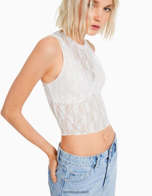 Bershka نحيف قميص دانتيل بلا أكمام كريم 804X398 ملابس
