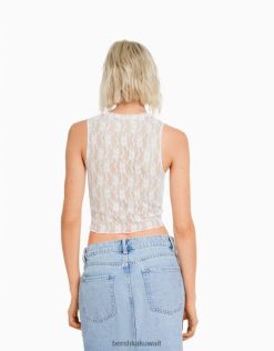 Bershka نحيف قميص دانتيل بلا أكمام كريم 804X874 ملابس