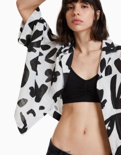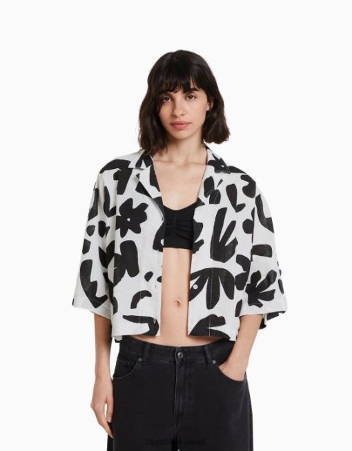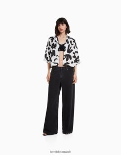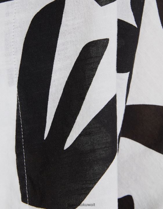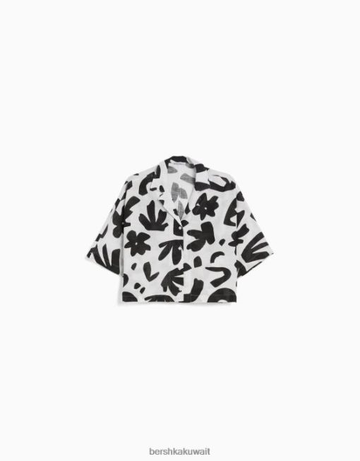 Bershka نحيف قميص ريفي بأكمام قصيرة بنمط الكيمونو أبيض أسود 804X912 ملابس