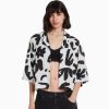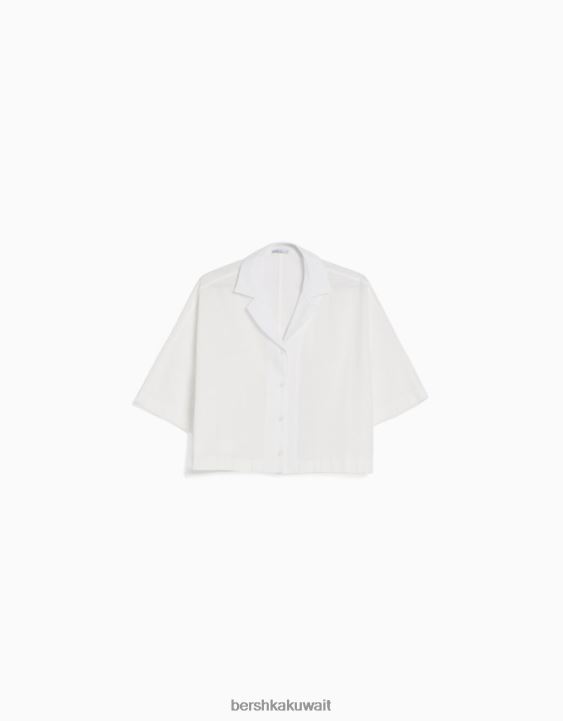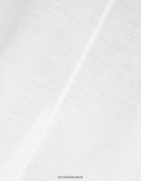 Bershka نحيف قميص ريفي بأكمام قصيرة بنمط الكيمونو أبيض 804X913 ملابس
