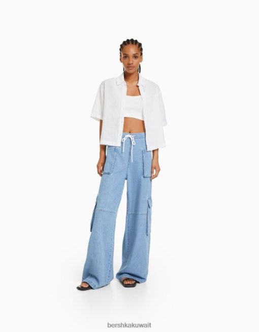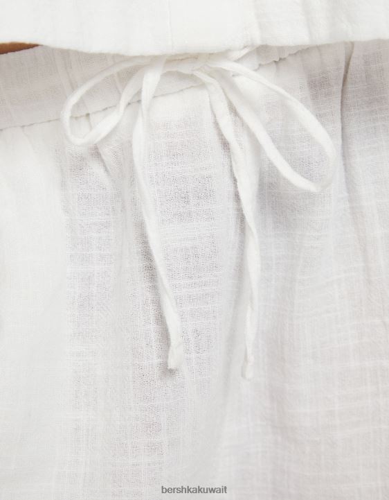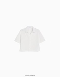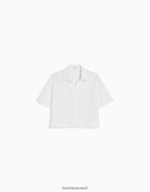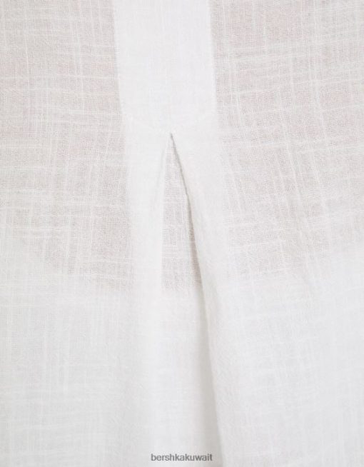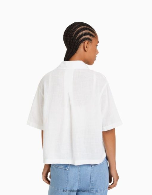 Bershka نحيف قميص ريفي محكم بأكمام قصيرة أبيض 804X905 ملابس